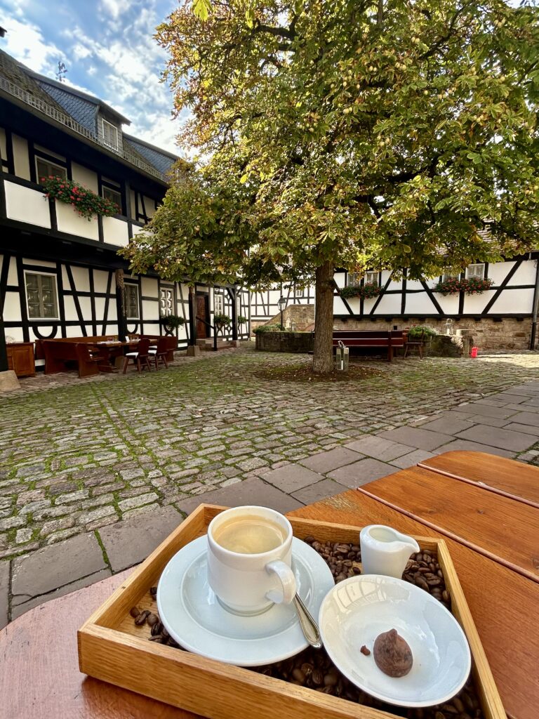 Hier trifft man sich – auf einen Kaffee am Nachmittag, auf ein Glas Wein vor dem Abendessen oder einfach, um die besondere Stimmung zu genießen. Wenn der Wind sanft durch die Blätter streicht und das Licht in warmen Tönen durch das Geäst fällt, entsteht ein Ort, der sich anfühlt wie ein heimlicher Lieblingsplatz.